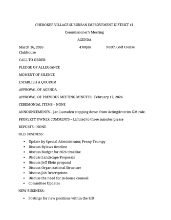 ©2026 Cherokee Village Suburban Improvement District