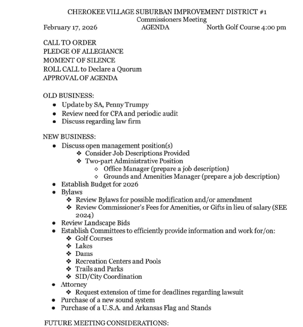 ©2026 Cherokee Village Suburban Improvement District
